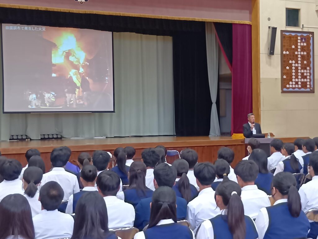 9月27日 大田区立大森東中学校の3年生を対象に「災害から身を守る」と題し講演活動を行いました。多くの保護者の方にも聴講頂きました。